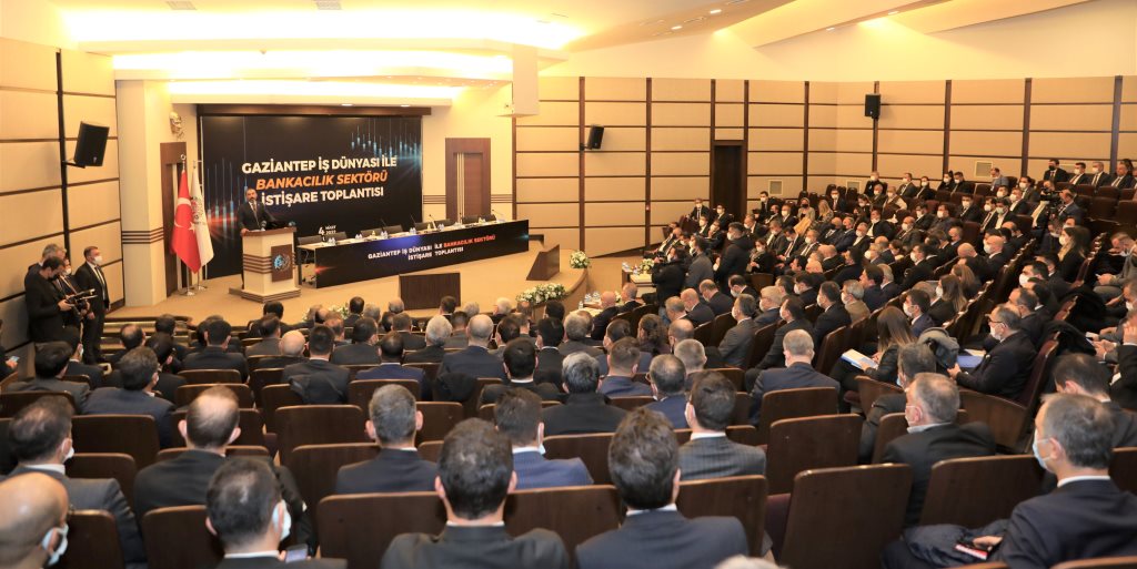 Gaziantep Ticaret Odası’nda (GTO) düzenlenen toplantıya, Gaziantep Valisi Davut Gül, Gaziantep Büyükşehir Belediye Başkanı Fatma Şahin, TBB Yönetim Kurulu Başkanı ve Ziraat Bankası Genel Müdürü Alpaslan Çakar, Gaziantep Sanayi Odası (GSO) Onursal Başkanı Abdulkadir Konukoğlu, Türkiye Vakıflar Bankası Genel Müdürü ve TBB Yönetim Kurulu Başkan Vekili Abdi Serdar Üstünsalih, Türkiye İş Bankası Genel Müdürü ve TBB Yönetim Kurulu Üyesi Hakan Aran, Türkiye Halkbankası Genel Müdürü ve TBB Yönetim Kurulu Üyesi Osman Arslan, Türkiye Sınai Kalkınma Bankası Genel Müdürü ve TBB Yönetim Kurulu Üyesi Ece Börü, Alternatifbank Genel Müdürü ve TBB Yönetim Kurulu Üyesi Cenk Kaan Gür, Türkiye Yatırım ve Kalkınma Bankası Genel Müdürü ve TBB Yönetim Kurulu Üyesi İbrahim Öztop, GSO Yönetim Kurulu Başkanı Adnan Ünverdi, GTO Meclis Başkanı M. Hilmi Teymur, GTO Yönetim Kurulu Başkanı Tuncay Yıldırım, GTB Meclis Başkanı Ahmet Tiryakioğlu, GTB Yönetim Kurulu Başkanı Mehmet Akıncı, Gaziantep Organize Sanayi Bölgesi Başkanı Cengiz Şimşek, oda ve borsa başkanları, kurum yetkilileri, sektör temsilcileri ve sanayiciler katıldı.