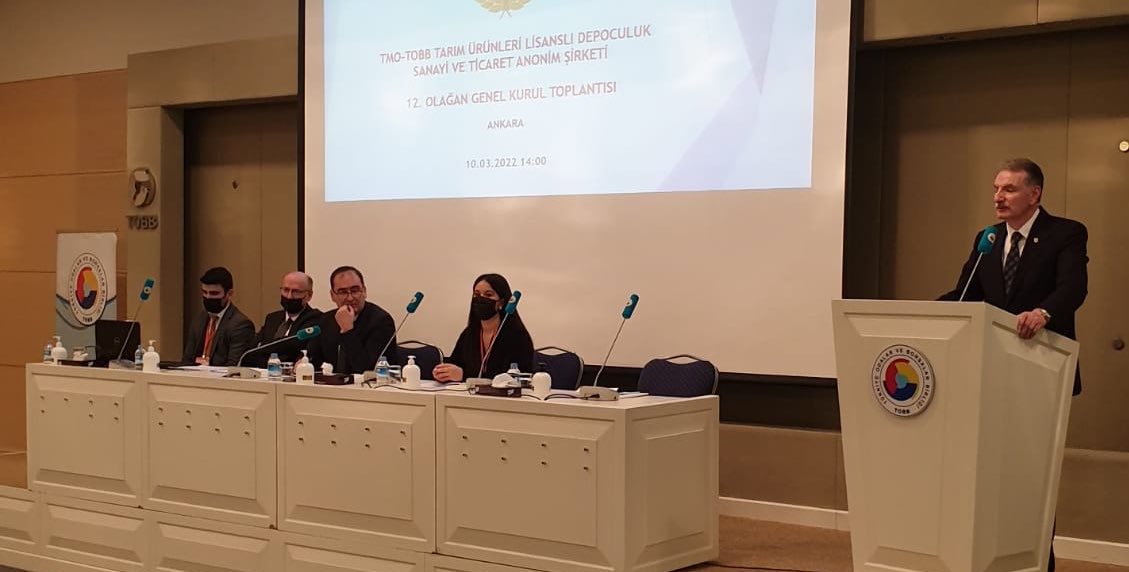 Türkiye’nin ilk lisanslı depoculuk şirketi ve sektörün gelişimine yön veren, ürün piyasalarında istikrara ve ekonomik dinamizme katkıda bulunan TMO-TOBB Tarım Ürünleri Lisanslı Depoculuk San. ve Tic. A.Ş. genel kurulunda gündemde yer alan, 2021 yılına ait şirket faaliyetleri ve şirketin 2022 yılındaki planlamalar, tahmini bütçe ve onayları, şirketin Yönetim Kurulu Üyelerinin seçilmesi hususları görüşüldü.
