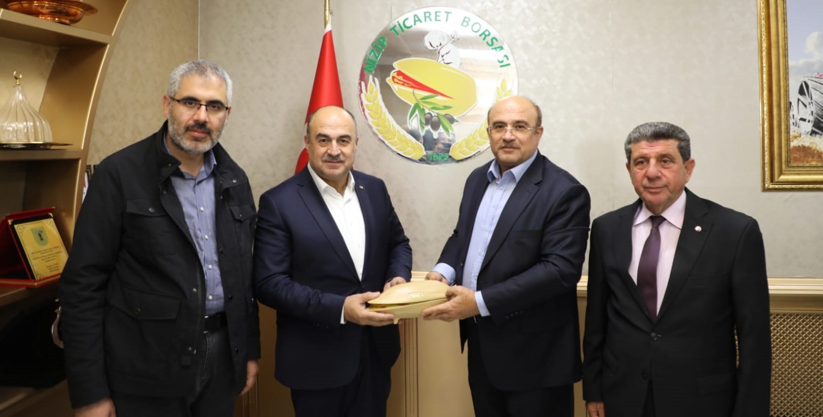NİZİP TİCARET BORSASINizip Belediye Başkanı Mehmet Sarı, Nizip Ticaret Borsası Başkanlığı seçimlerinde 3. kez seçilerek güven tazeleyen İbrahim Sarı ve yönetimini ziyaret etti.