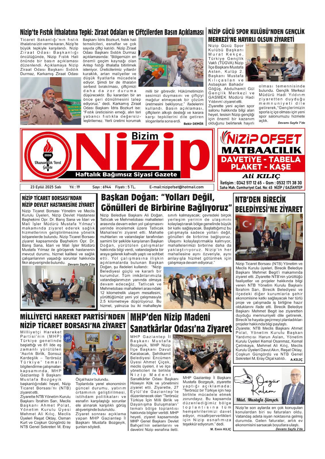 Anahtar Parti Nizip İlçe Yönetimi Ntb’yi Ziyaret Etti